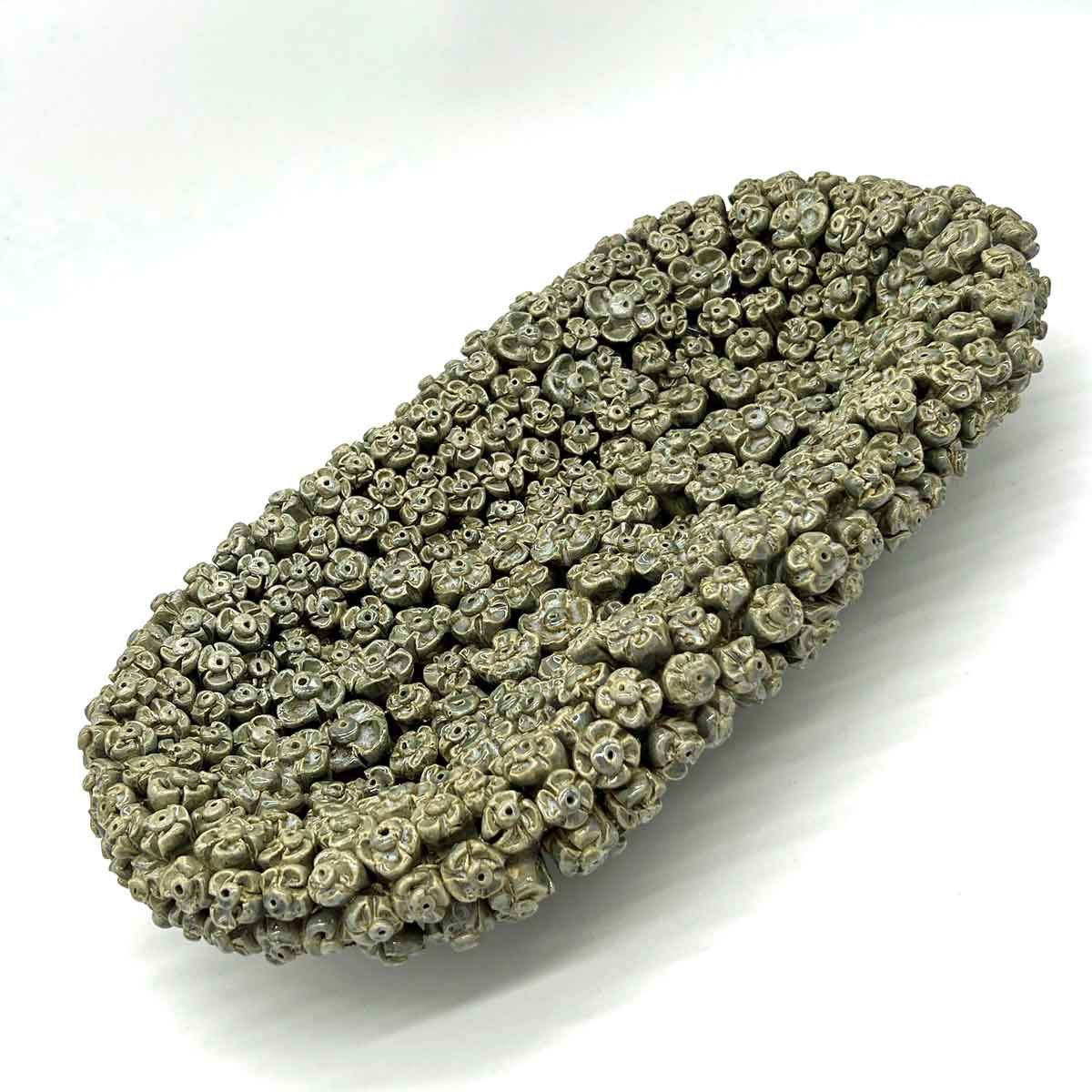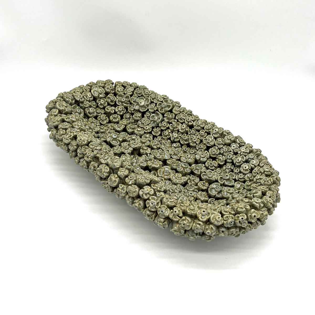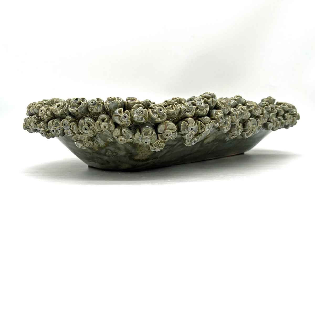 Deze prachtige design ovale bloemenschaal is opgebouwd uit honderden handgemaakte bloemetjes. De schaal doet het goed in elk interieur en is een echte eyecatcher. De schaal heeft een lengte van 45cm en is 24cm breed.