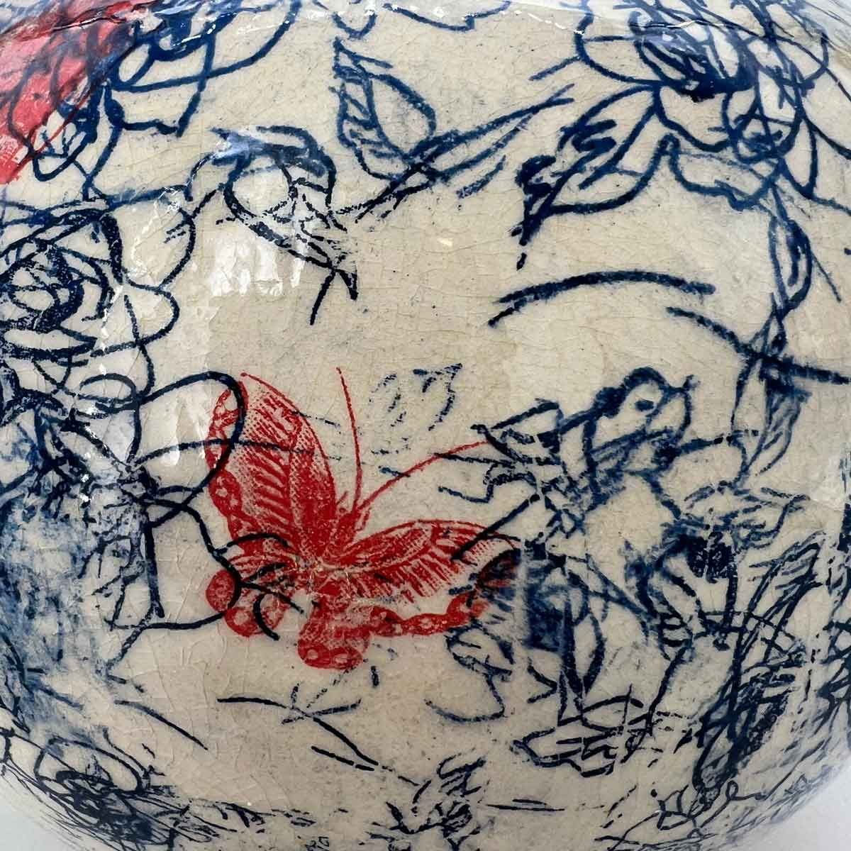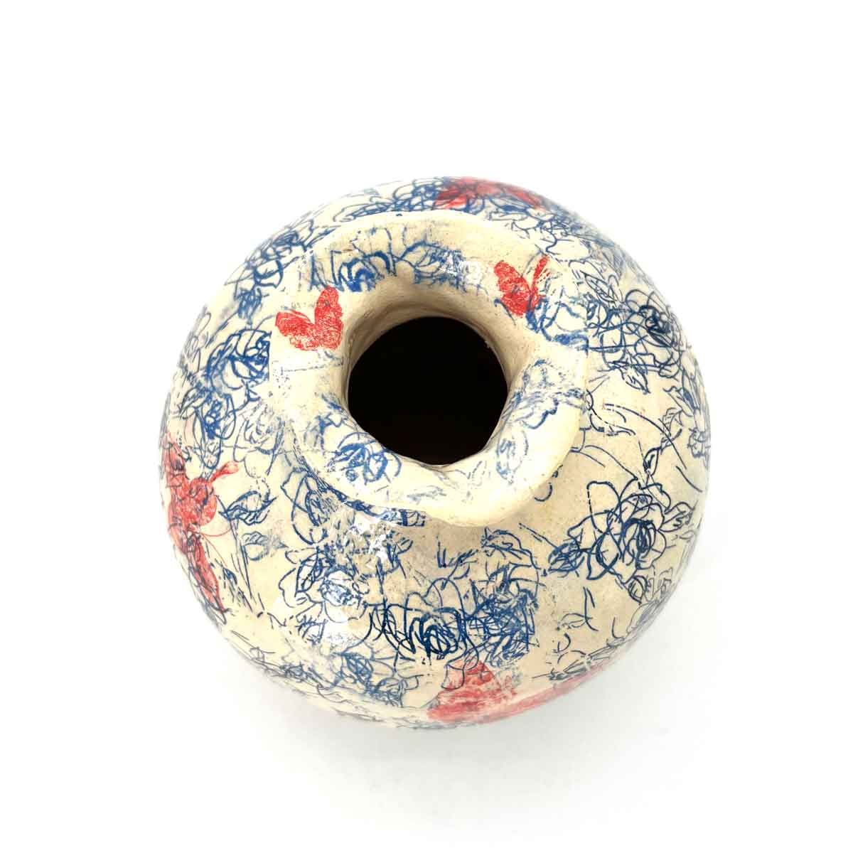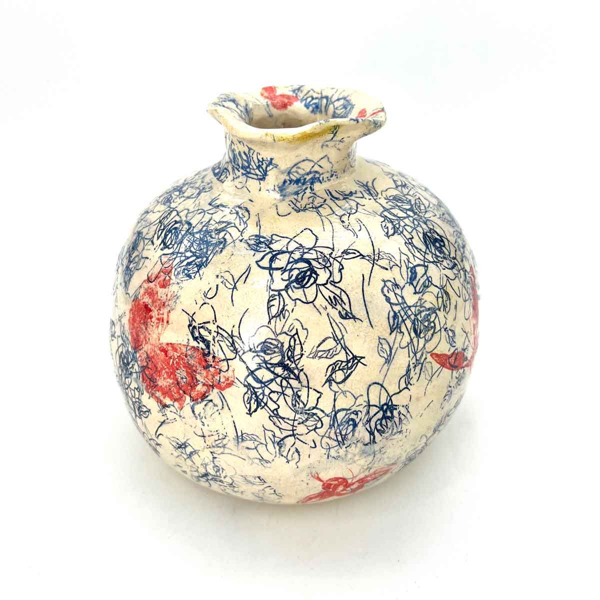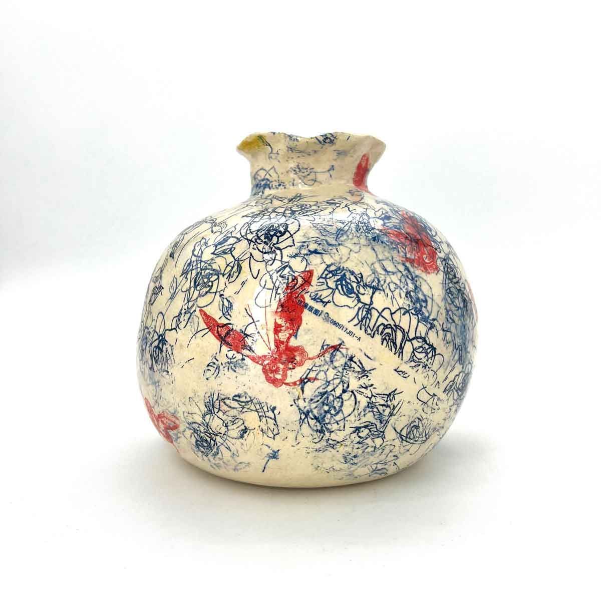 Een leuk bolvaasje in vrolijke kleuren. De hoogte van dit vaasje is 18cm.