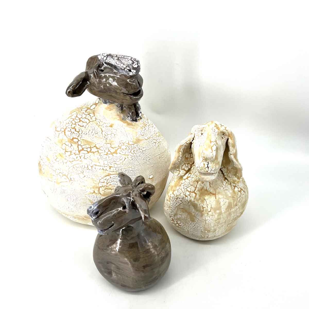 Ontdek onze keramische geiten: kunstzinnige meesterwerken met de hand gemaakt voor een vleugje speelse elegantie. Elk stuk straalt vakmanschap uit, van gedetailleerde gezichtsuitdrukkingen tot gestructureerde vacht. Perfect voor liefhebbers van dierenkunst en een tijdloze toevoeging aan elk interieur.