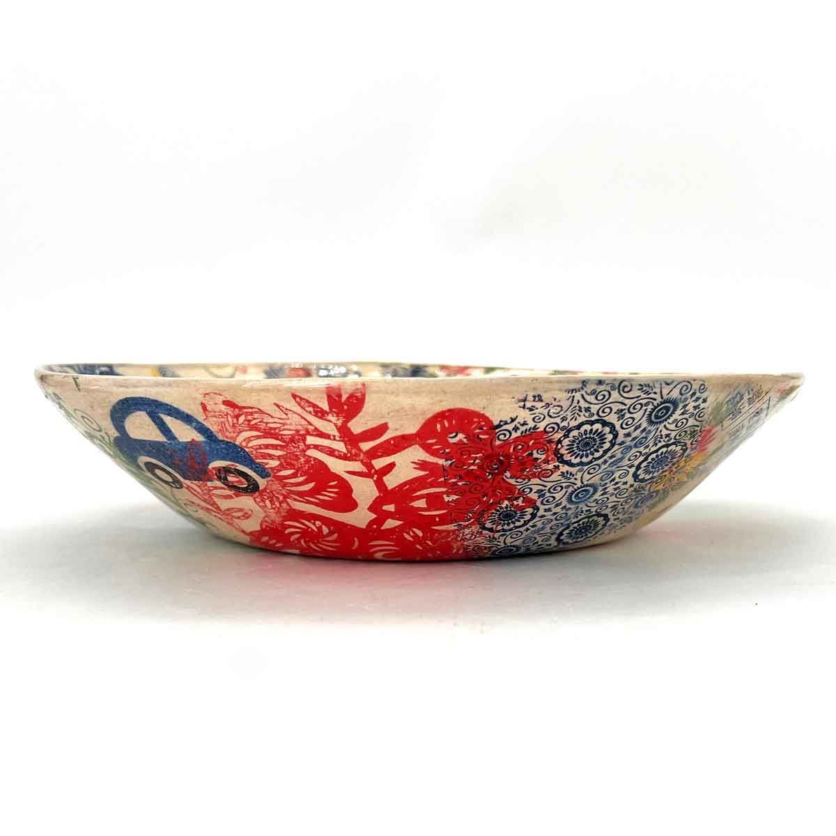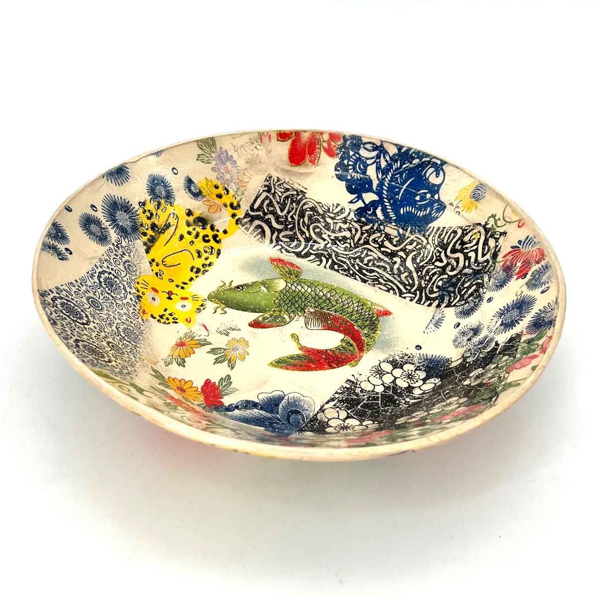 Een verfijnde keramische schaal met een prachtig Japans motief. Creëer een sfeer van ingetogen elegantie met dit kunstzinnige stuk. Perfect voor het serveren van gerechten of als decoratief pronkstuk. Een kunstzinnige toevoeging aan jouw interieur!De schaal heeft een doorsnede van 27 cm.