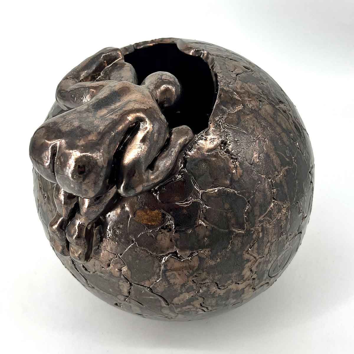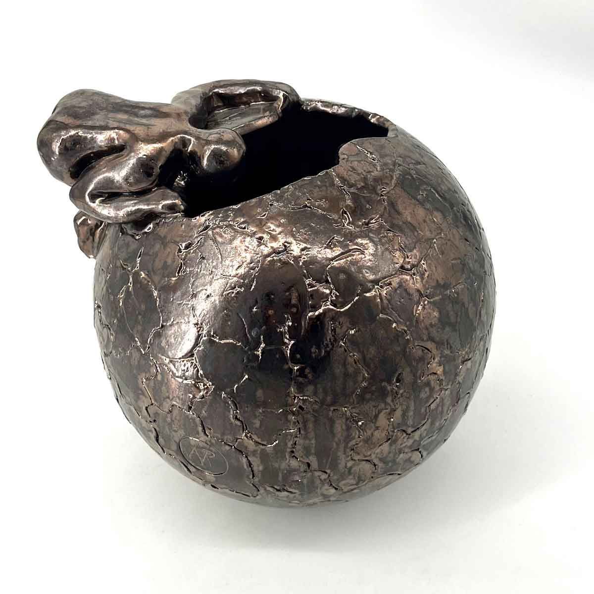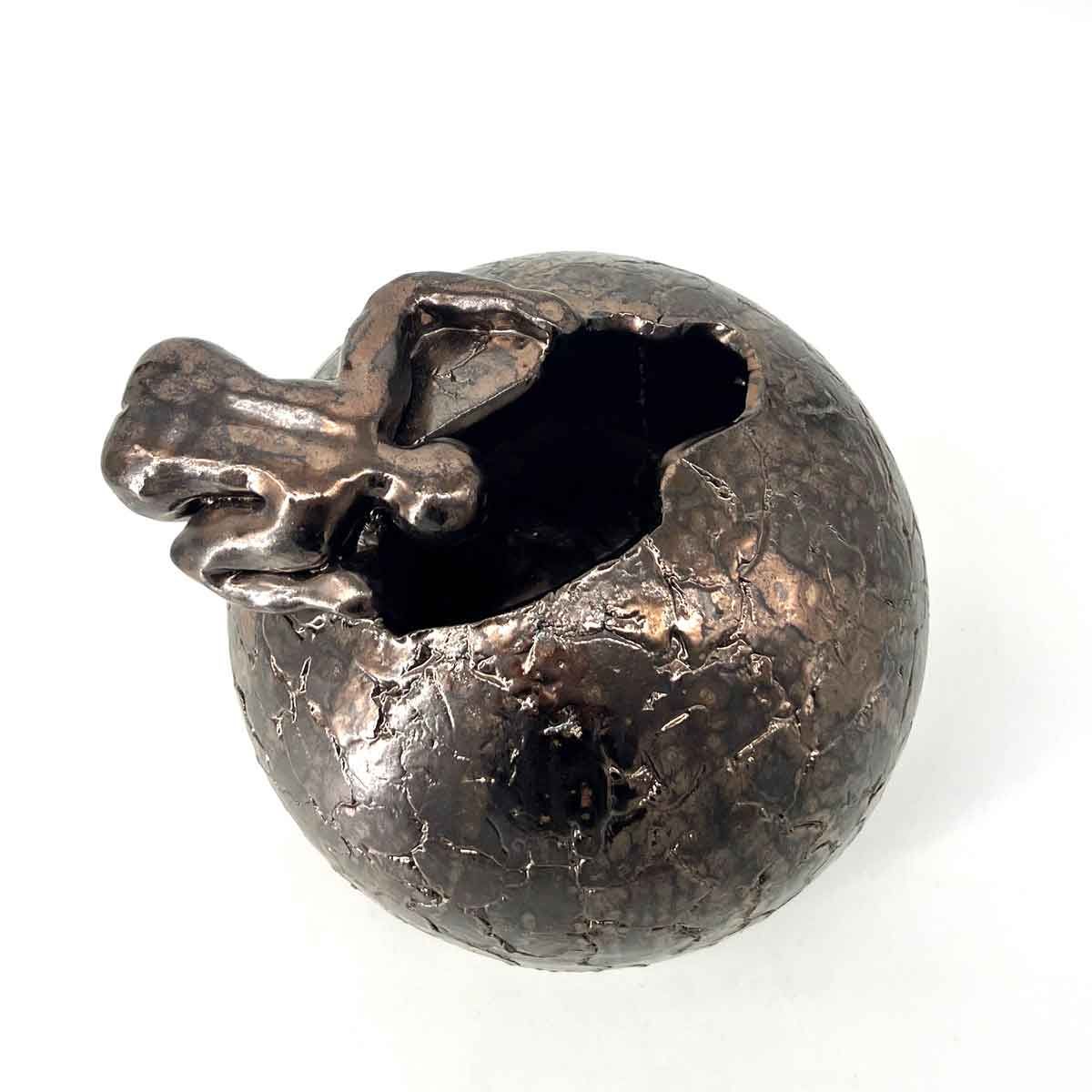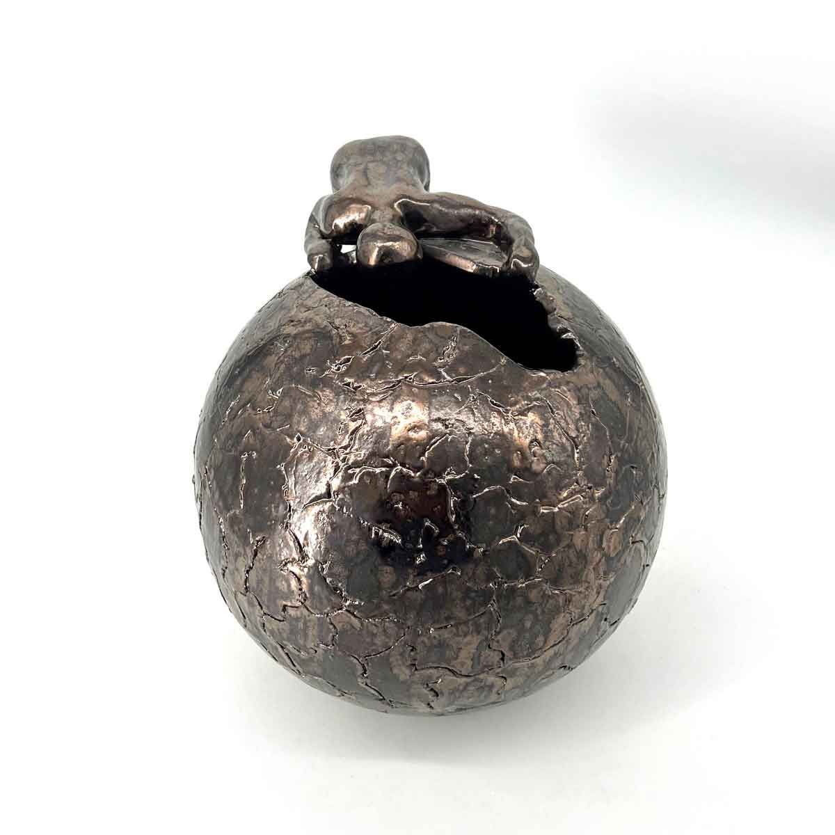Onderzoek de kern en je weet waar je over praat. Dat is waar dit beeld "Kernonderzoek" voor staat. Het beeld is gemaakt van keramiek en geglazuurd met bronsglazuur. De bol bestaat uit allemaal stukjes waardoor je een erg leuk effect krijgt. De hoogte is 26 cm en doorsnede 25 cm.