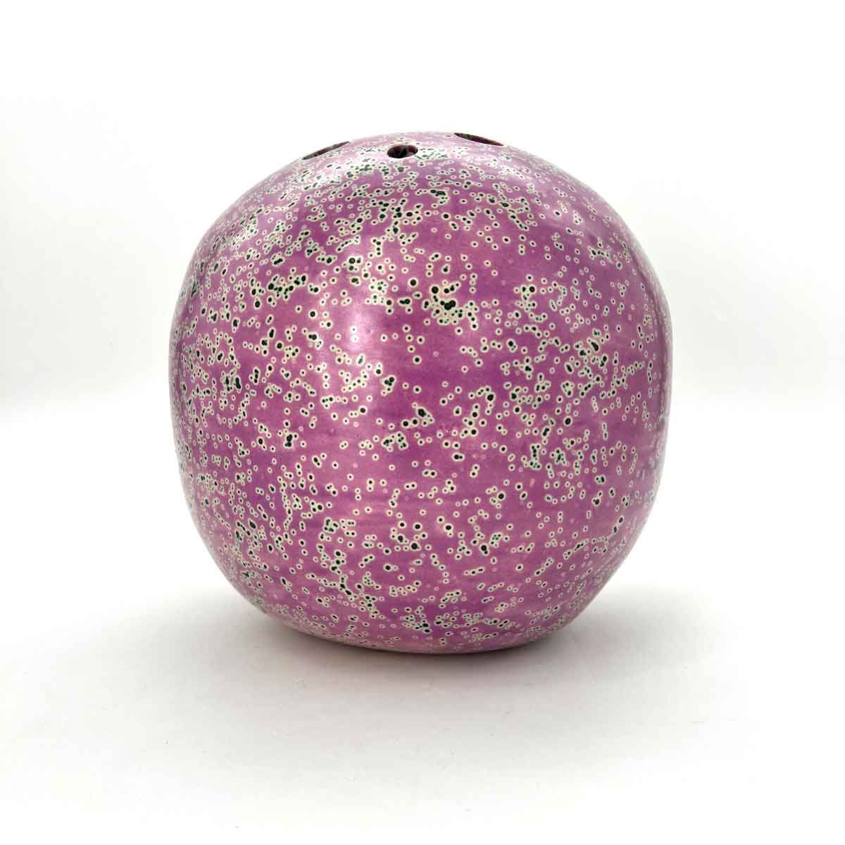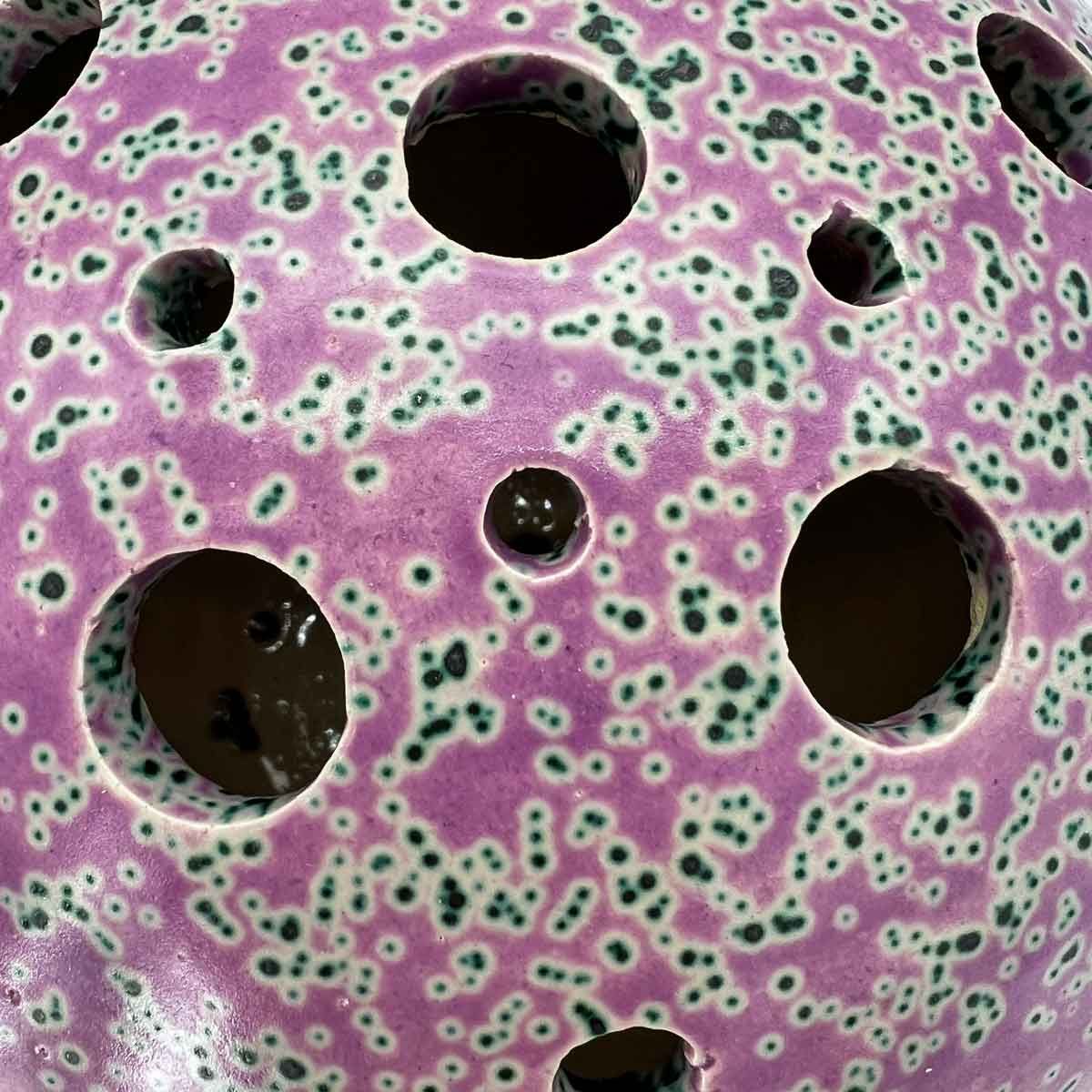 Deze prachtige vaas heb ik gemaakt van keramiek en geglazuurd met een mooie lila glazuur met spikkels. Hierdoor krijg je het bijzondere effect zoals te zien is op de foto's. Je kunt deze ook eventueel vullen met droogbloemen in de diverse gaten. De hoogte van deze vaas is 23cm.