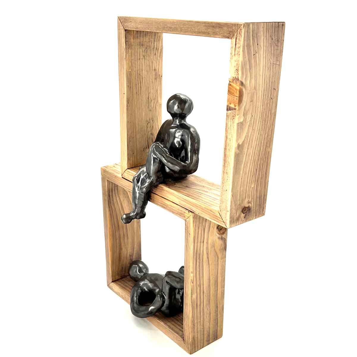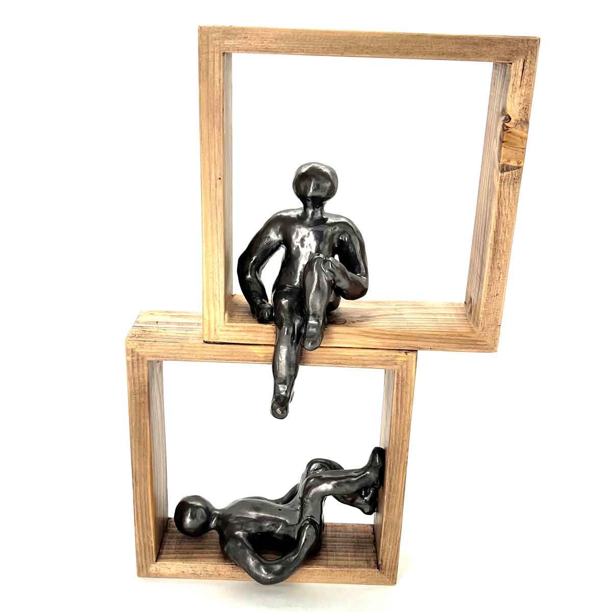 Leuk beeld van twee personen die op kamers gaan. De hoogte van het kunstwerk is 48 cm.