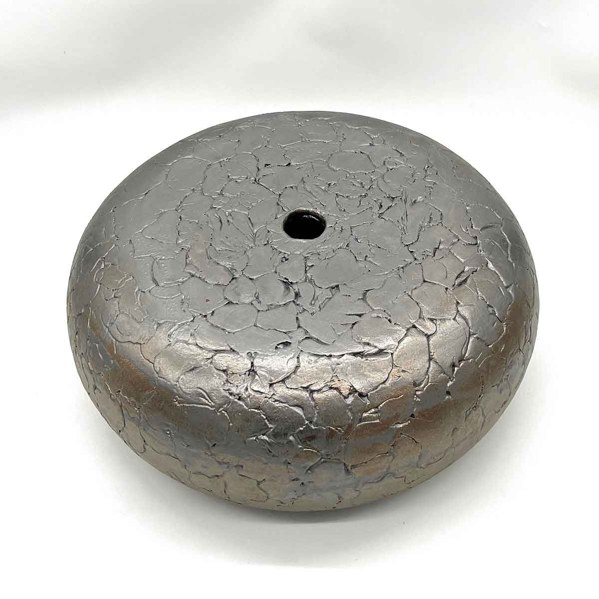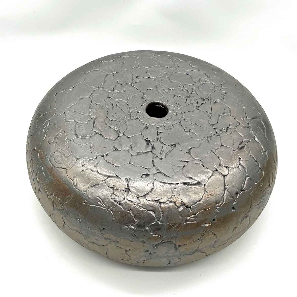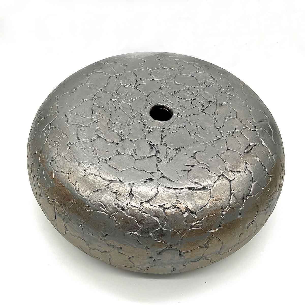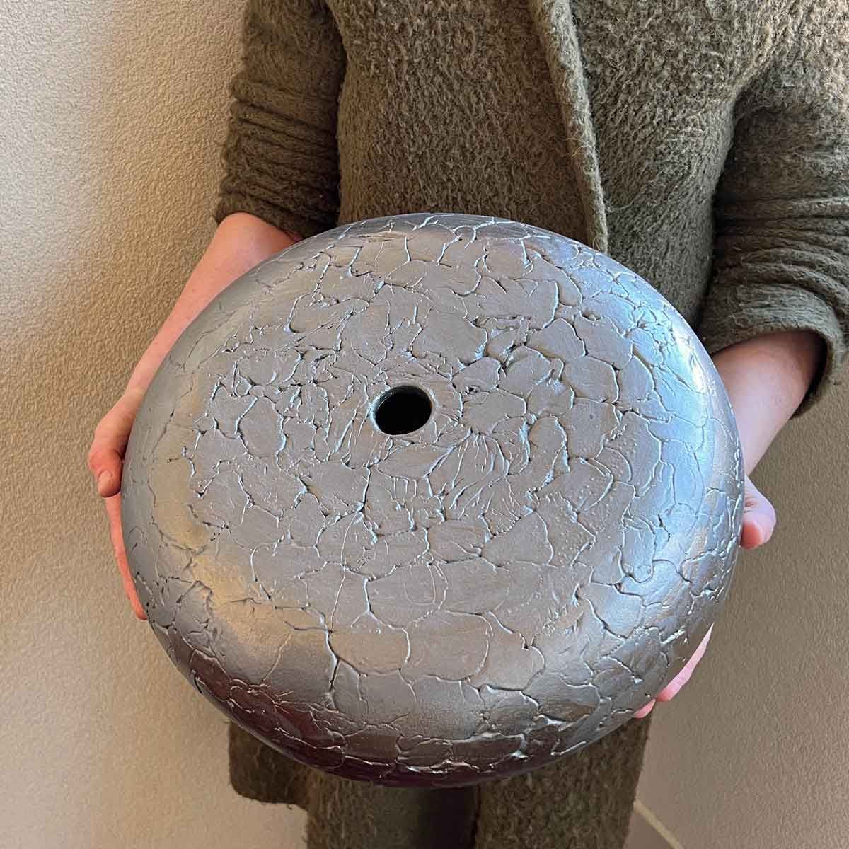Deze prachtige vaas heb ik gemaakt van keramiek in stukjes. Hierdoor krijg je het bijzondere effect zoals te zien is op de foto's. De vaas is geglazuurd in grijsbrons glazuur. De vaas past in elk interieur. U kunt deze ook eventueel vullen met droogbloemen. De doorsnede van deze vaas is 38cm en de hoogte is 19cm.