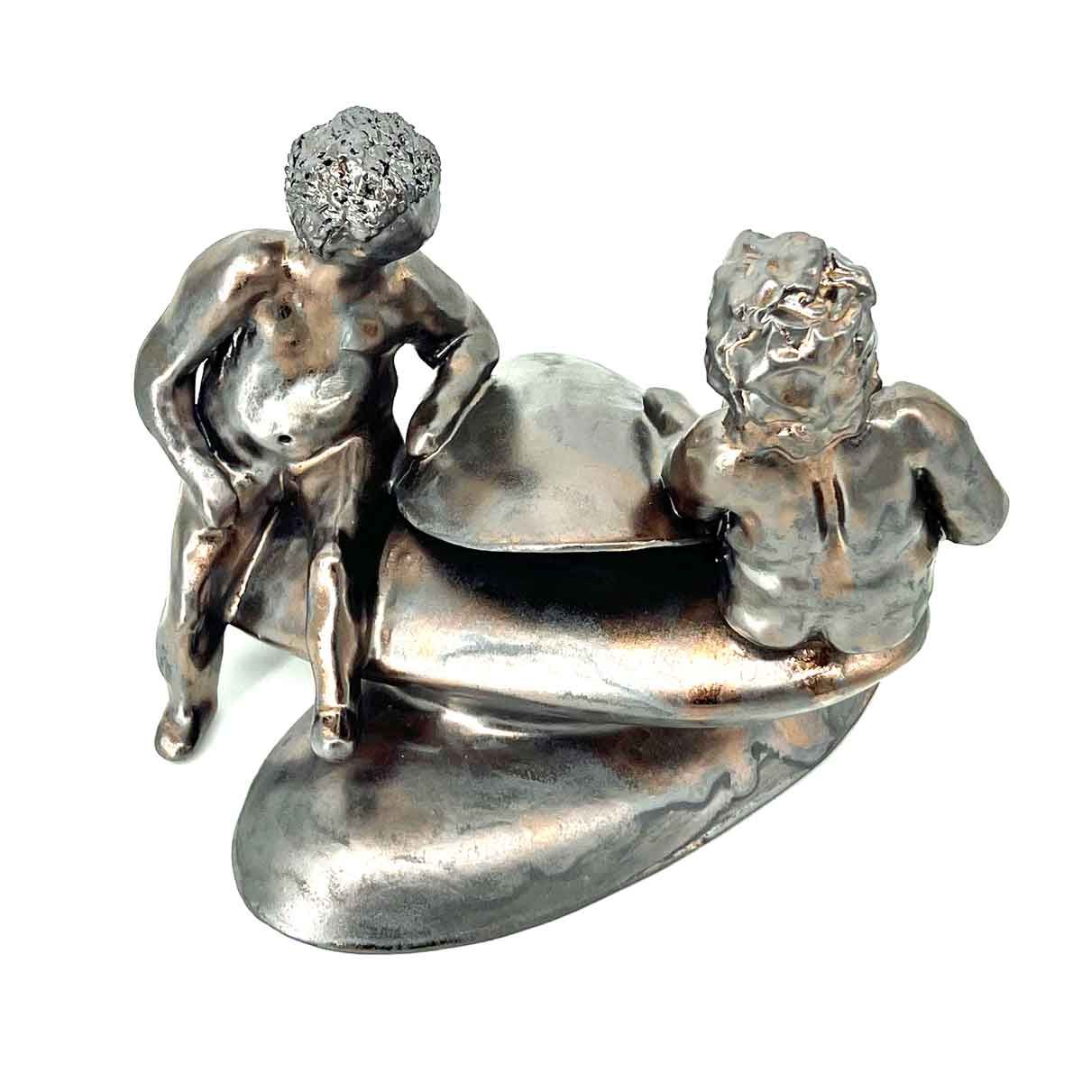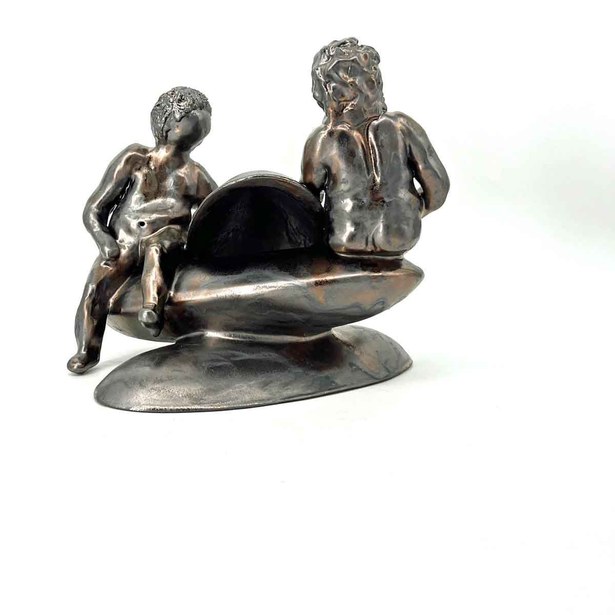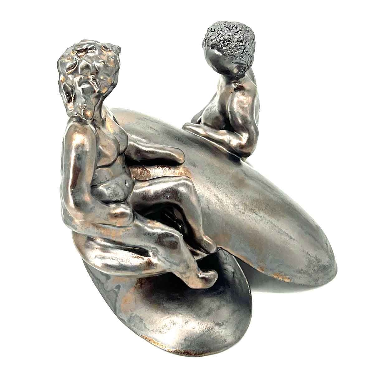 Lekker een beetje op je surfplank dobberen en daarna op het strand chillen. Het goede leven. De hoogte van dit beeldje is 22 cm en de lengte is 23 cm.