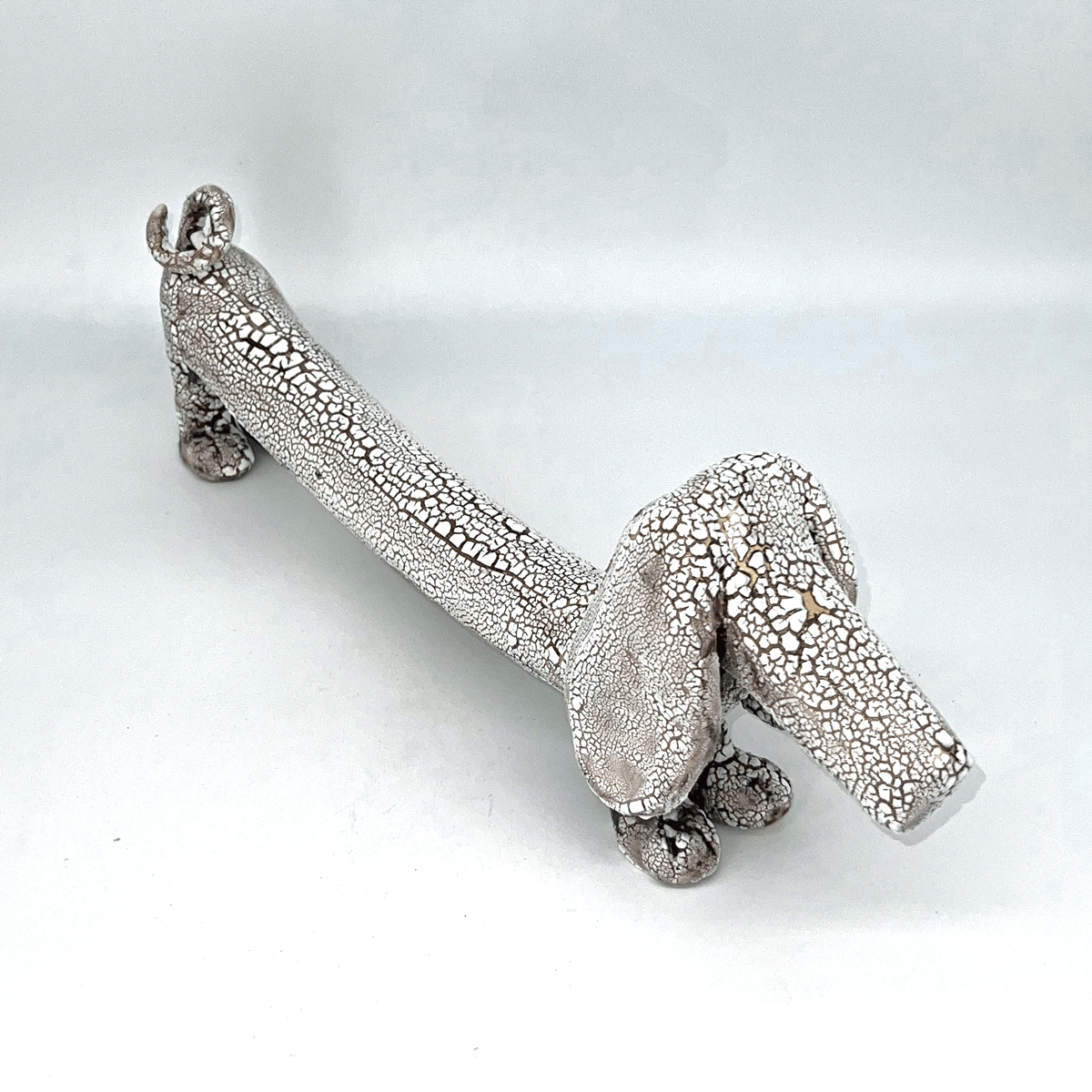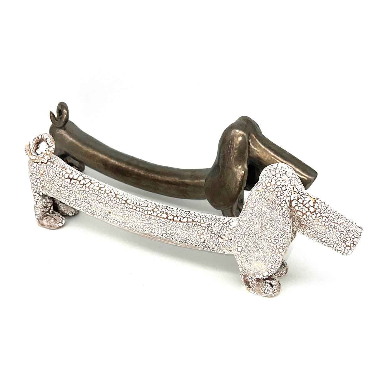 Deze beelden van teckels van keramiek zijn een vrolijke toevoeging aan elke kamer. Het is gemaakt van keramiek en is verkrijgbaar in een verscheidenheid aan kleuren. De teckel is met liefde en aandacht voor detail gemaakt en is een perfecte manier om je liefde voor deze schattige honden te tonen. Deze beelden zijn een perfect cadeau voor elke teckelliefhebber.De lengte van de teckels is 38cm.